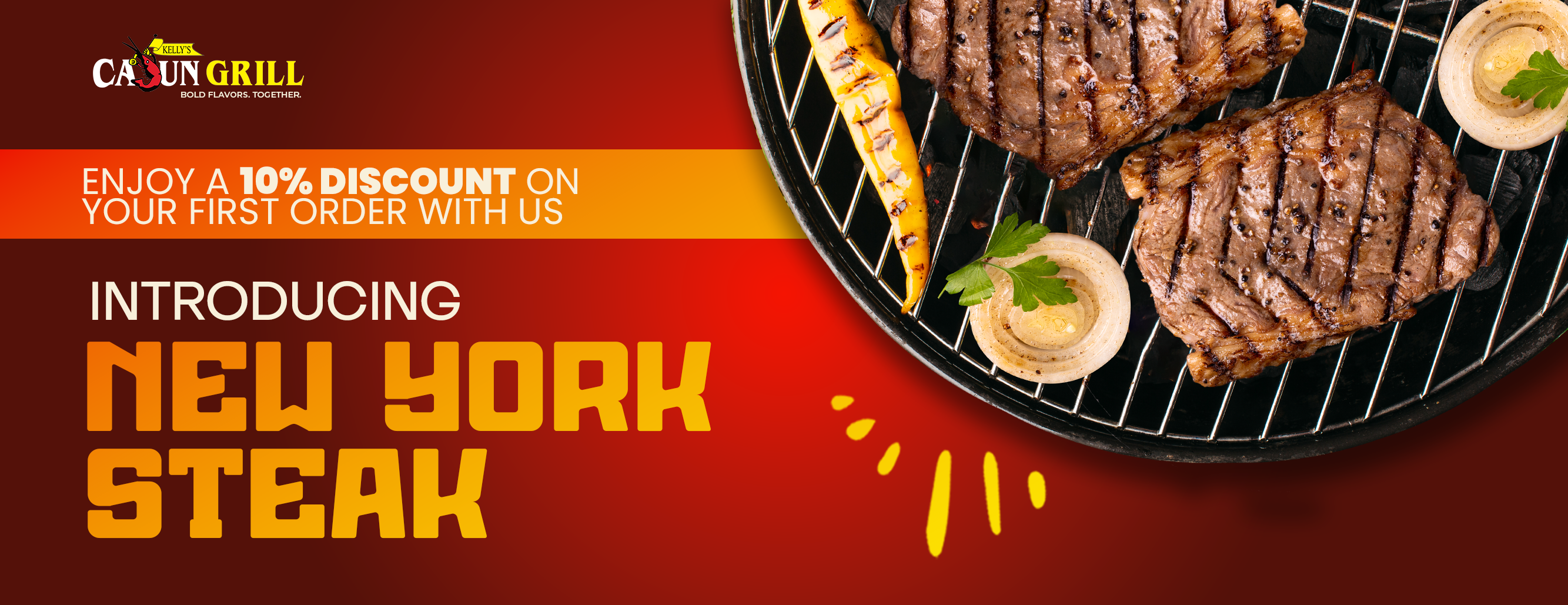 Juicy, tender New York-style beef steak grilled to perfection and seasoned with bold Cajun spices. This combo comes complete with your choice of sides – from seasoned rice to buttery corn or crispy fries – making it the ultimate hearty meal for true meat lovers.