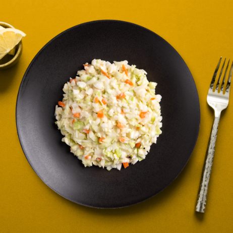 Fresh cabbage and carrots mixed with a creamy, tangy dressing.