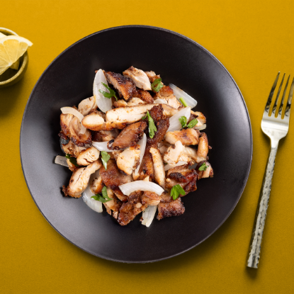 Our Cajun Blackened Chicken is seasoned with an authentic blend of Chicken Cajun spices, skillfully blackened to seal in juicy tenderness. Garnished with onion and parsley for added flavor and freshness